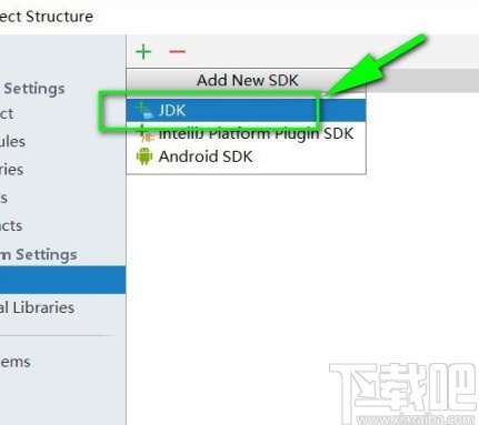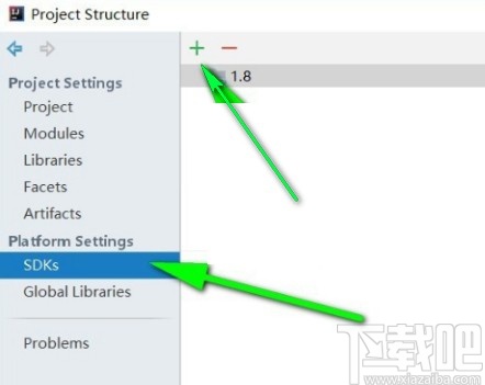2.点击之后在下一步出现的界面中选择左边的SDKs这个选项,然后再点击界面中绿色的加号图标。