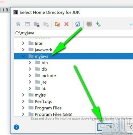 4.在出现的配置界面中,我们选择JDK安装的文件位置,直接点击指定之后再点击OK按钮即可选择JDK所在的文件位置。
