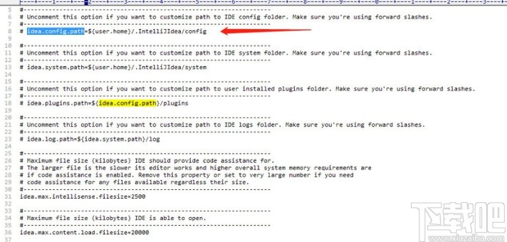 4.打开这个配置文件之后,找到idea.config.path的变量,也就是配置文件的保存位置,可以直接进行搜索。