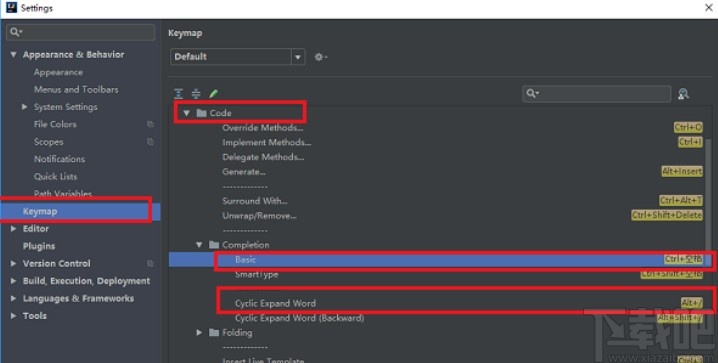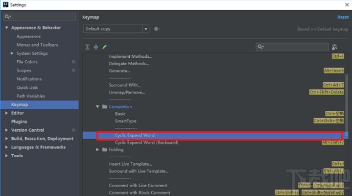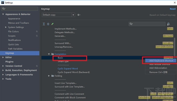 2.点击打开设置界面之后,在左边找到keymap这个选项,点击之后切换到设置快捷键的界面。