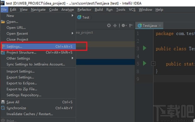 1.首先第一步我们打开软件之后,在软件主界面的左上角点击file选项,点击之后在菜单中选择settings设置选项打开设置界面。