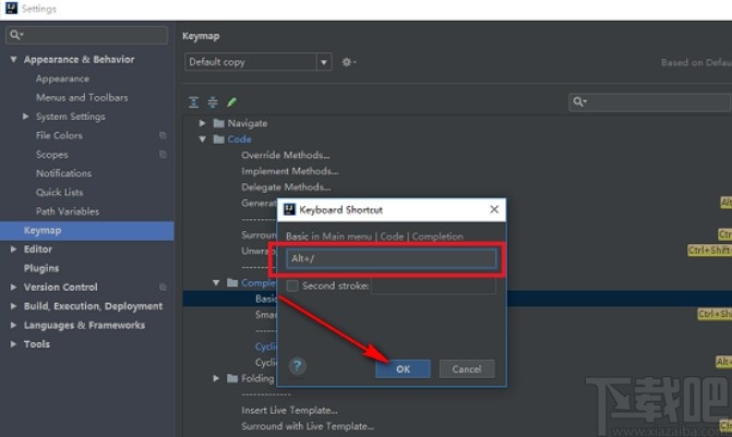 6.最后我们在设置代码提示快捷键的界面,输入想要设置的代码提示快捷键并点击OK按钮即可,之后想要使用到代码提示功能直接按下快捷键即可。