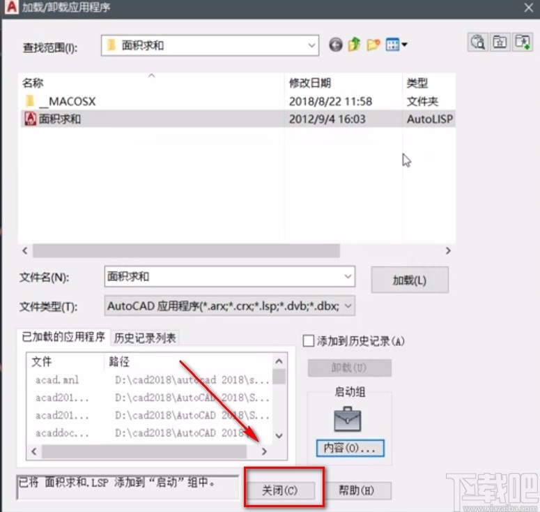 6.将插件添加到启动组对话框后,我们直接点击对话框左下角的“添加”按钮,即可成功将插件添加到软件中。