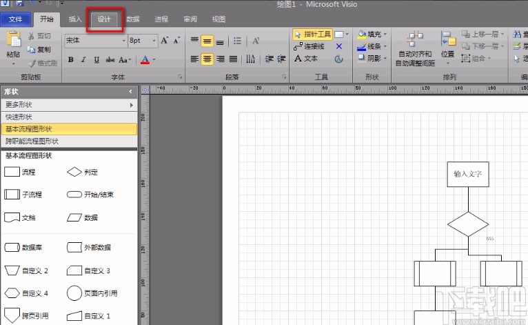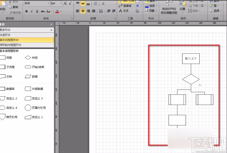 3.然后我们在可以根据自己的需要在图纸上绘制一个流程图,在这里也可以不绘制;小编在这里绘制图形的目的是观看效果。
