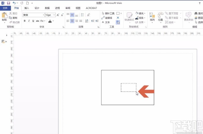 3.然后我们将鼠标移动到绘制区域,在绘制区中按住鼠标左键不放,同时移动鼠标,绘制出一个存放文本的文本块。