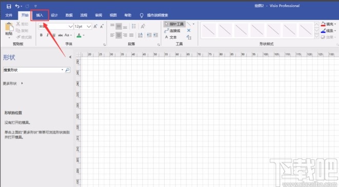 1.首先打开软件,我们在软件中新建一个空白文档,并在界面上方的菜单栏中点击“插入”选项卡。