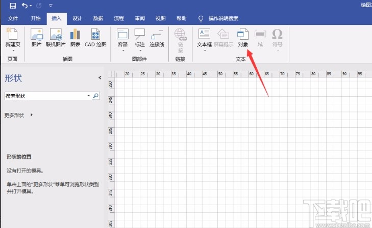 2.接着在插入选项卡下方找到“对象”选项,我们点击该选项再进行下一步操作。