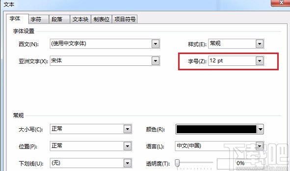 4.这时候我们点击“字号”选项后面的下拉按钮,并根据自己的需要在下拉框中选择字号。