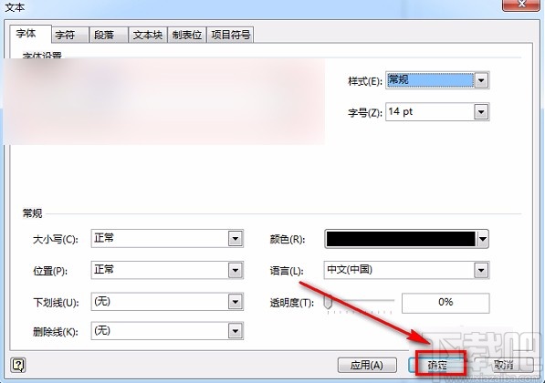5.选择好字号后,我们在窗口底部找到“确定”按钮,点击该按钮就可以成功设置好文字大小。