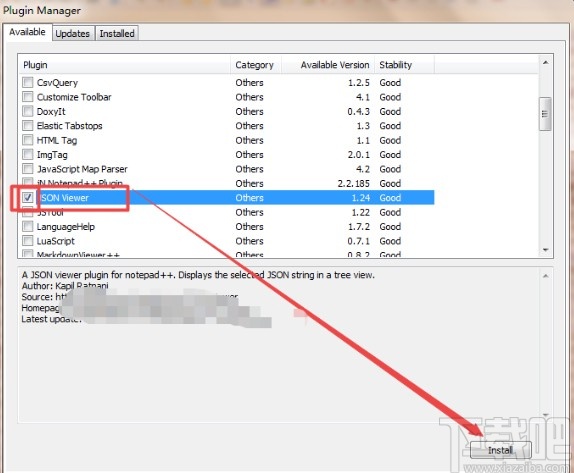 4.点击这个选项之后,下一步在出现的界面中,我们找到JSON Viewer这个选项,然后点击勾选它,点击右边的Install按钮。