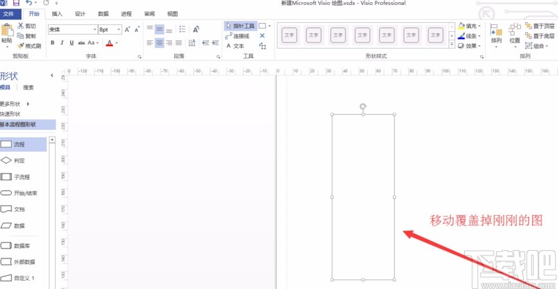 3.然后我们将刚刚调整大小的方框移动到左侧,使其覆盖之前画的图,这样显示出来的就是空白文字。