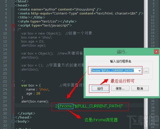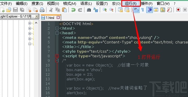 1.首先我们需要先编辑好一个HTML文件,运行浏览器之后才会有程序效果,代码编写完成之后点击上方的运行选项。
