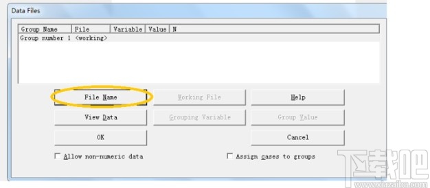 3.上一个步骤图中框出的左边工具栏图标之后,打开data files这个选项界面,然后点击其中的file name这个功能按钮。