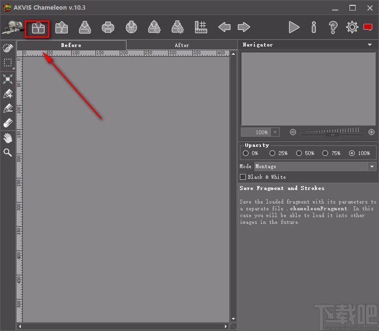3.将第一张图片文件添加到软件后,我们在界面左上方找到下图所示的文件打开按钮,再按照第二步的方法,将需要拼接的另一张图片添加到软件中。