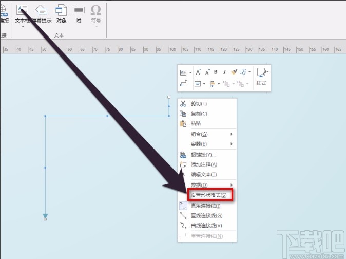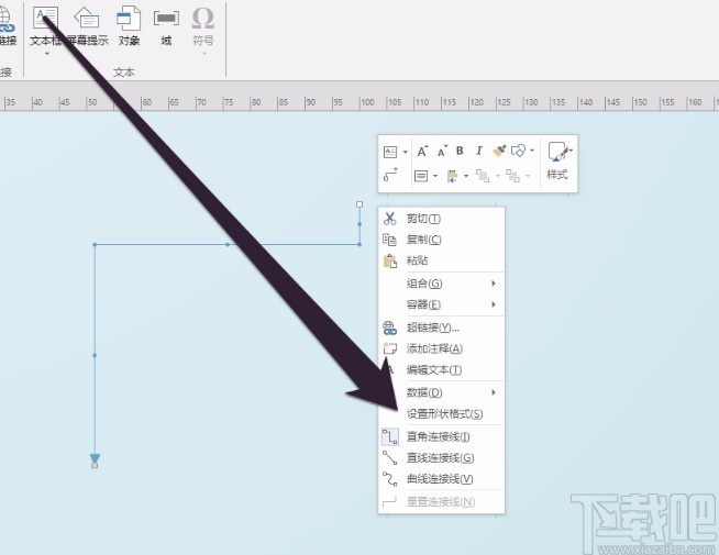 3.绘制好连接线之后,我们在画布中选中连接线,并且用鼠标右击它,界面上会出现一个下拉框。