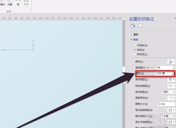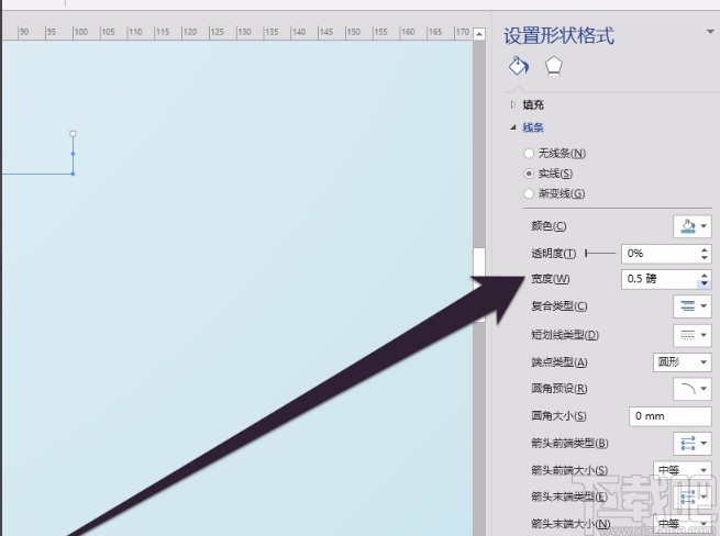 5.然后界面右侧就会出现一个设置形状格式窗口,我们在窗口中可以找到“宽度”选项。