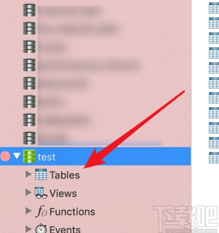1.首先第一步我们打开软件之后找到想要删除表的数据库,然后点击该数据库中的表格文件夹。