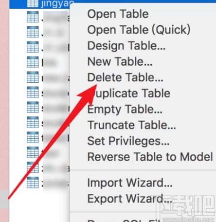 2.点击表格文件夹之后,下一步就在表格列表中找到自己想要删除的那一个表格,右键点击之后选择Delete Table这个删除表格选项。