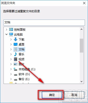 2.接着在浏览文件夹窗口中,我们找到需要查找重复文件的位置并选中,再点击窗口底部的“确定”按钮。