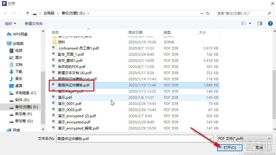 2.点击浏览按钮之后打开一个选择文件的界面,在这个界面中我们选中想要编辑文字的PDF文件打开它。