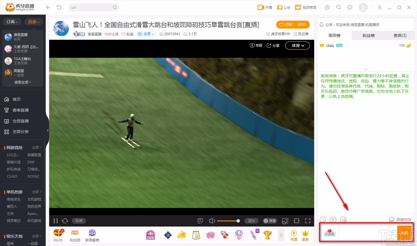 6.在界面右下方还可以找到一个文本框,在这个文本框中可以输入文字、表情等内容,再点击“发送”按钮发送弹幕。