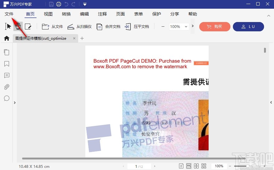 1.首先我们打开软件之后,打开一个文件,在文件的左上角找到文件选项并点击,打开文件菜单。
