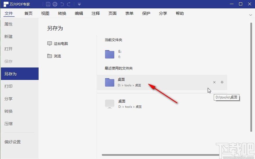 6.点击固定这个保存路径之后,我们下一次再打开另存为界面就可以直接点击固定好的这个保存路径选择它来保存了,这样就成功配置好保存路径了。