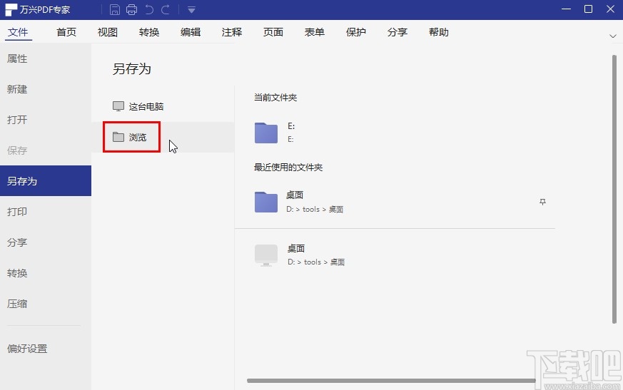 3.点击切换到另存为界面之后,下一步我们需要点击界面中的浏览这个按钮,然后就可以选择文件另存为的保存路径了。