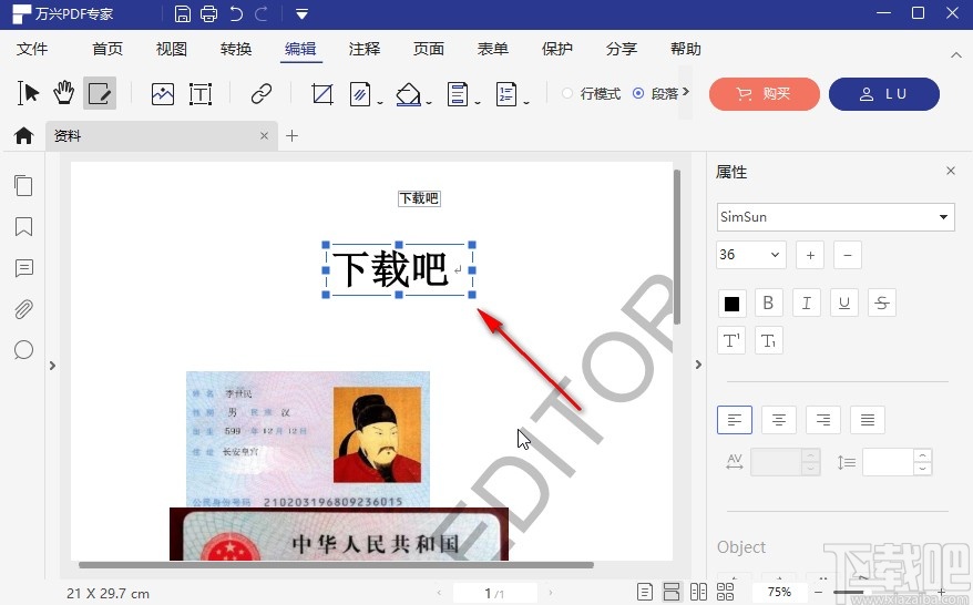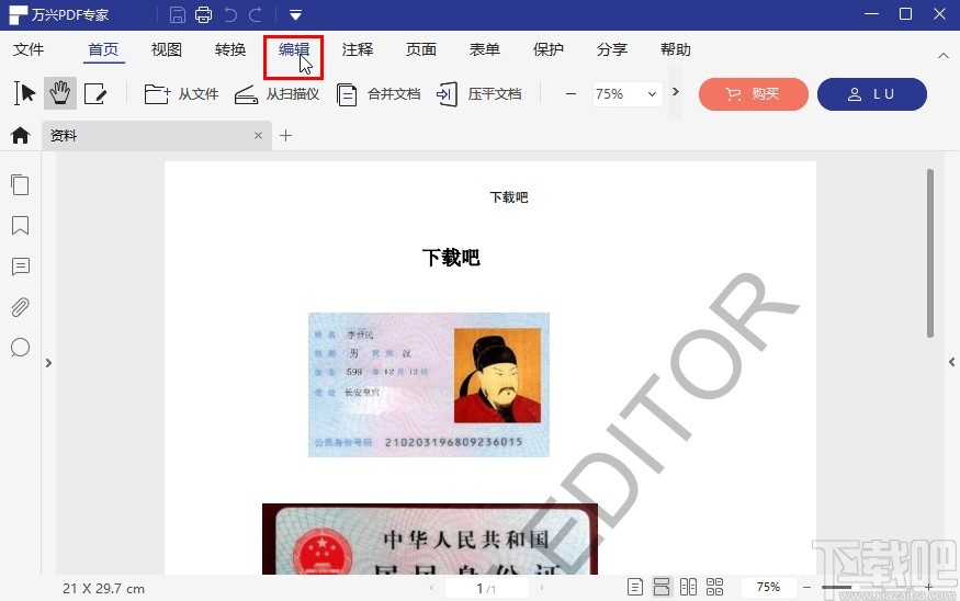 2.紧接着下一步我们在出现的界面中就可以点击上方的编辑选项,切换到编辑界面当中了,如下图中所示。