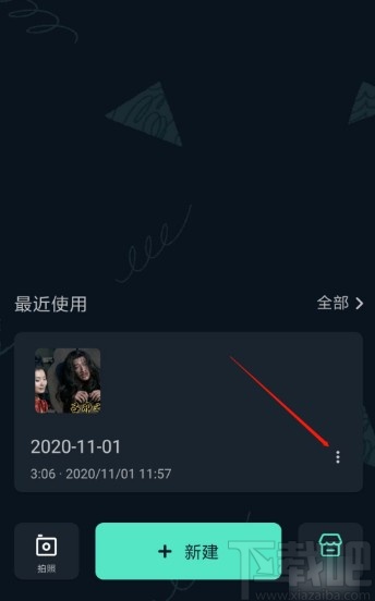 2.进入到应用主界面之后,我们在主界面最近使用模块可以看到最近编辑的项目,找到想要删除的项目之后点击右下方的三点按钮。