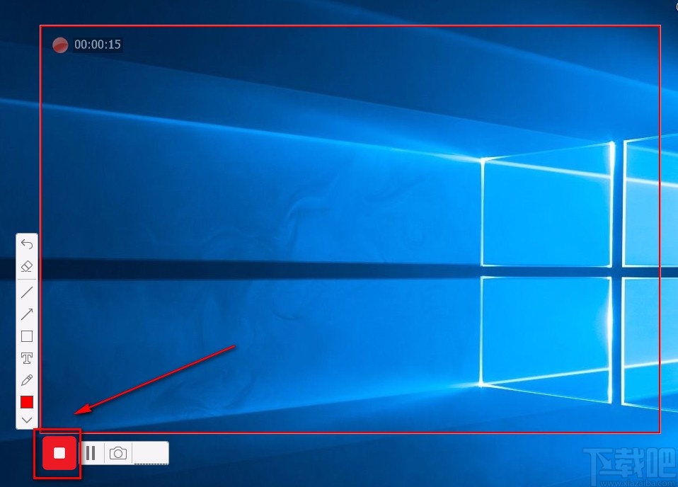 6.接下来返回到电脑界面,我们在录制框左下角点击红色的小圆按钮,就可以开始录制电脑屏幕。