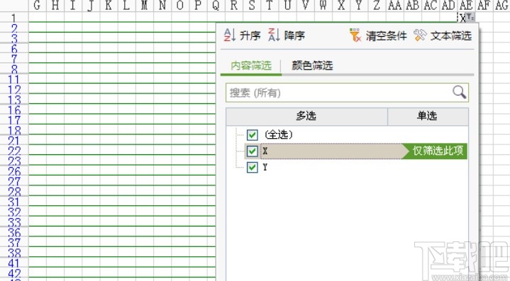 8.最后再利用筛选功能,选择拼音和田字格所有部分的单元格,筛选之后可以将不要的单元格线筛选掉,这样拼音田字格的效果就会显示出来了。