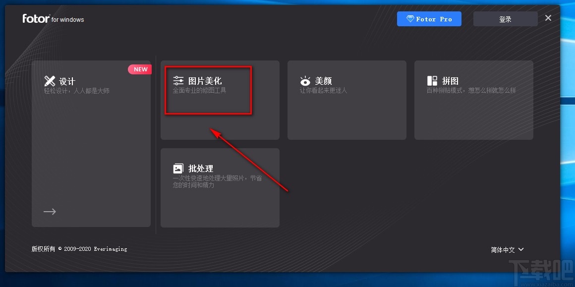 1.首先打开软件,我们在界面上找到“图片美化”选项,点击该选项进入到美化图片页面。