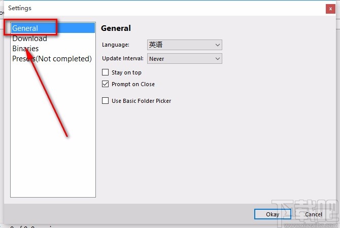 3.我们在窗口左上角找到“General”选项,点击该选项,窗口中就会显示出相应的操作选项。