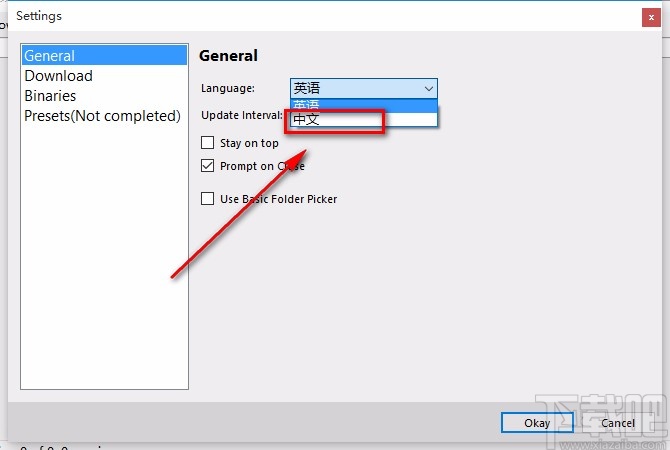 4.接着我们在窗口中找到“Language”选项,该选项后面有一个下拉按钮,点击该按钮,在下拉框中选择“中文”。