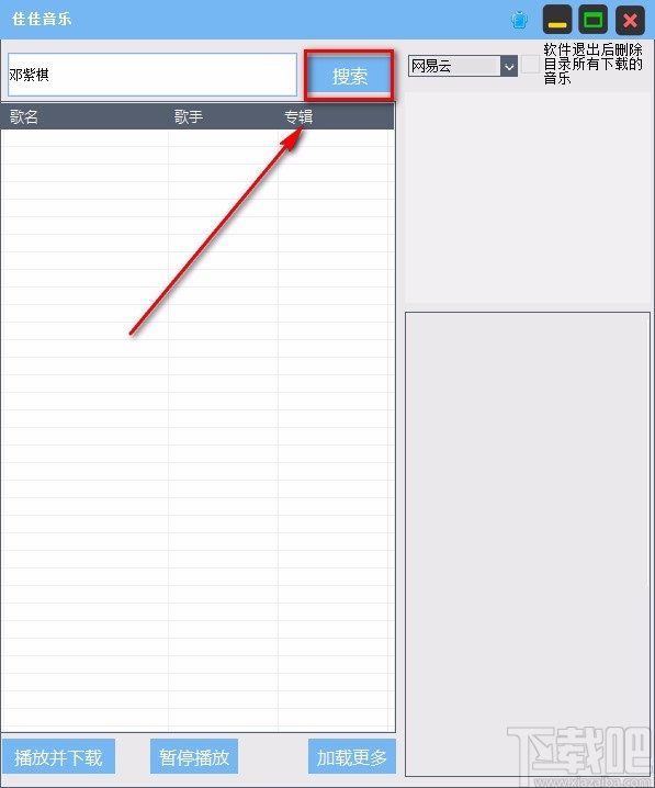 2.输入想要搜索的歌曲名称或者歌手名字后,我们可以点击“搜索”按钮,软件就会自动搜索相应的内容。