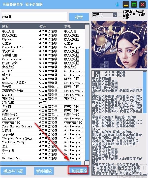 5.如果搜索出来的结果没有我们想要的歌曲,则可以点击界面下方的“加载更多”按钮,界面上就会显示出更多的结果。