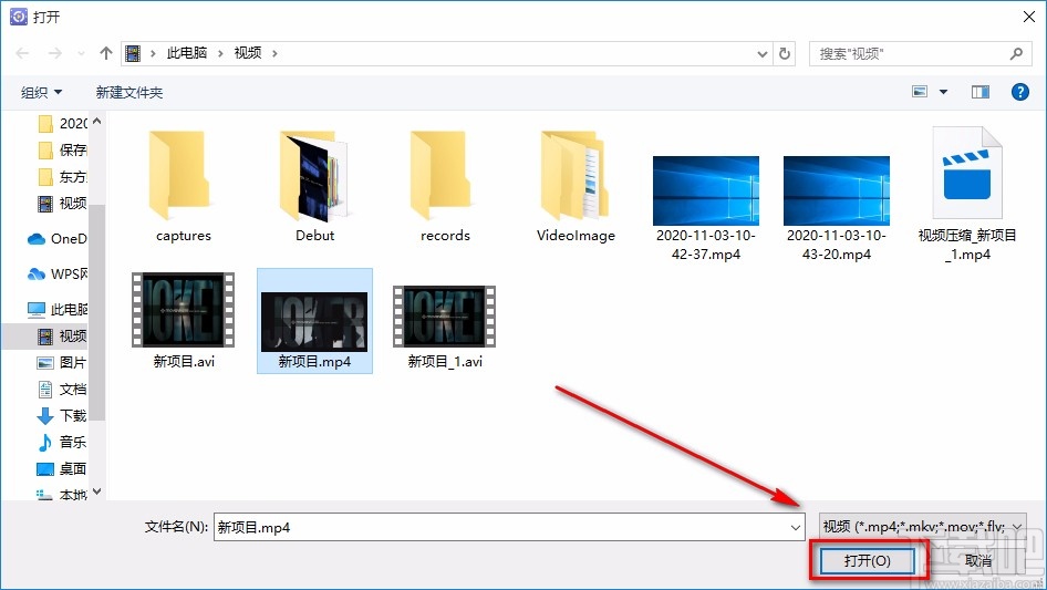 3.在文件添加页面中,我们在页面上找到需要截图的视频并选中,再点击页面右下角的“打开”按钮即可。