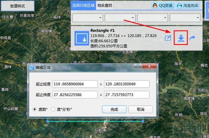 5.如果想要下载测量成功的距离或者面积的话,直接点击这个信息模块中的下载图标,如下图中所示,点击下载即可开始下载。