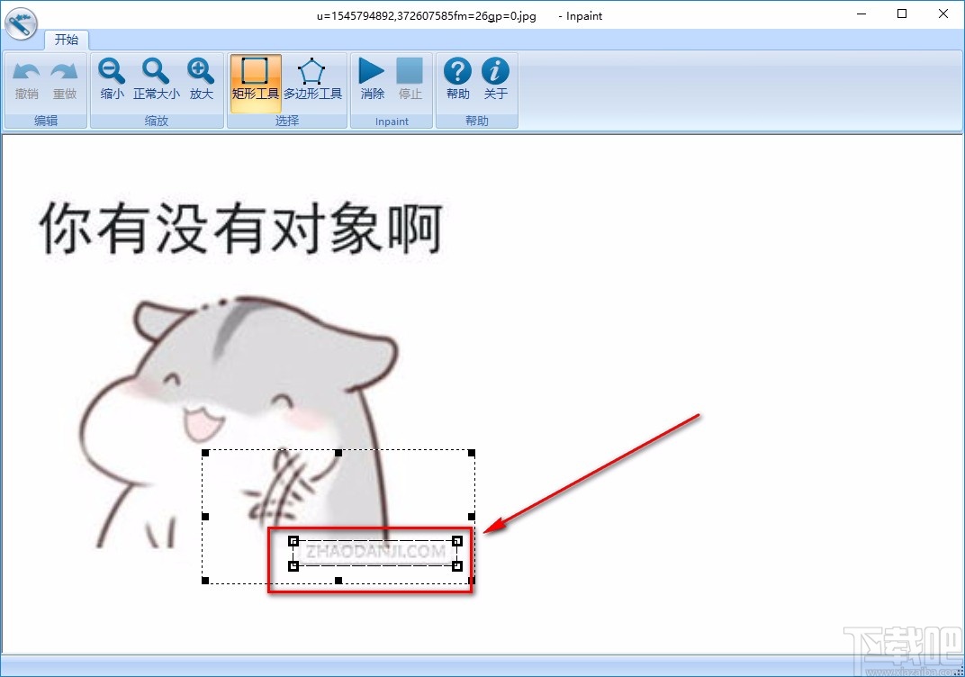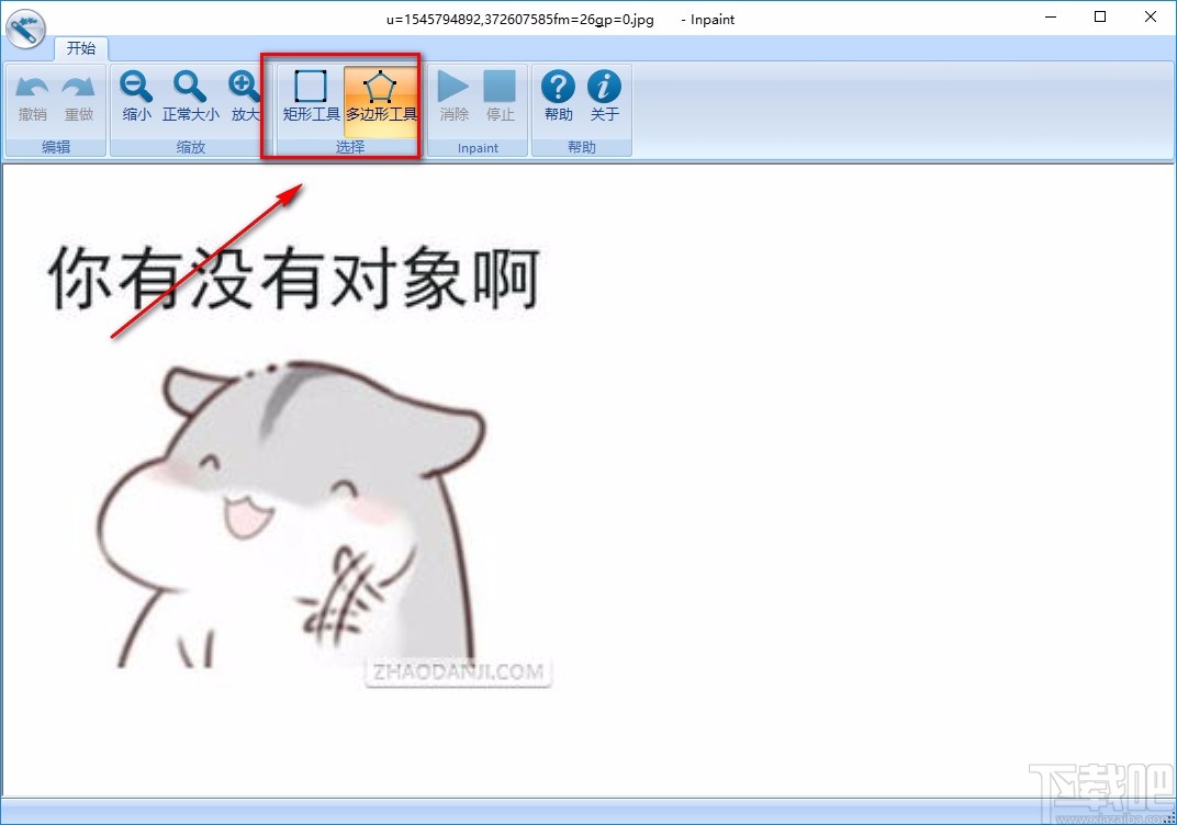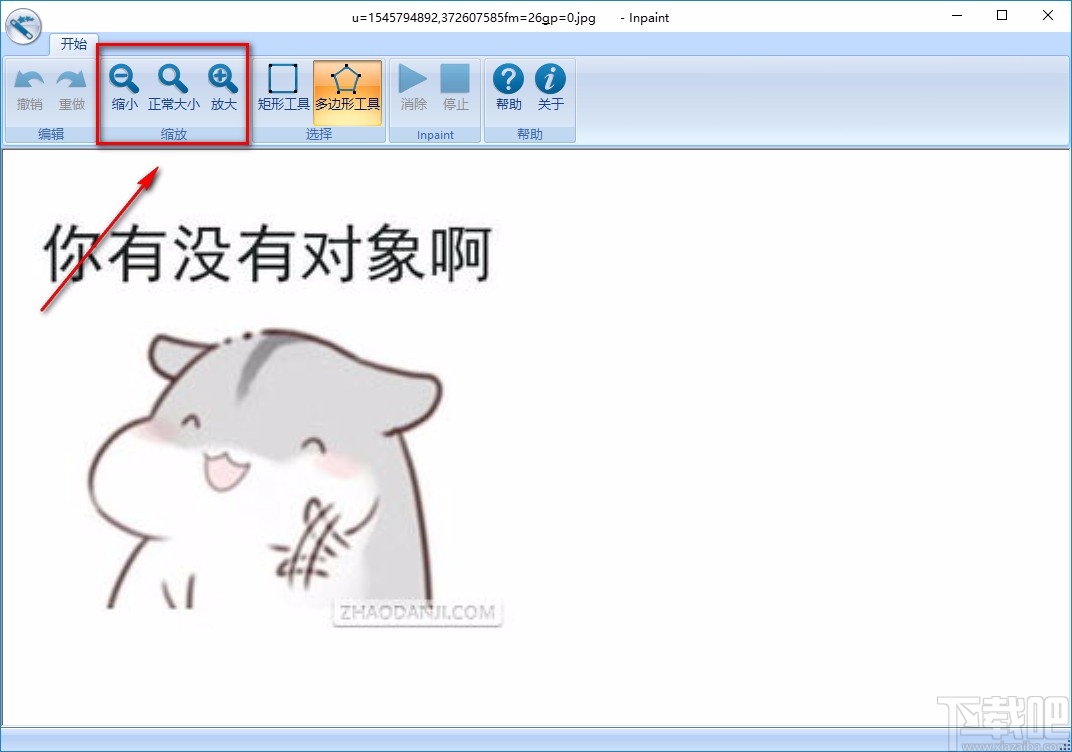 3.将图片文件添加到软件后,我们在界面左上方可以使用“缩小”、“正常放大”、“放大”工具,来缩放图片的大小,以便对图片进行去除水印的操作。