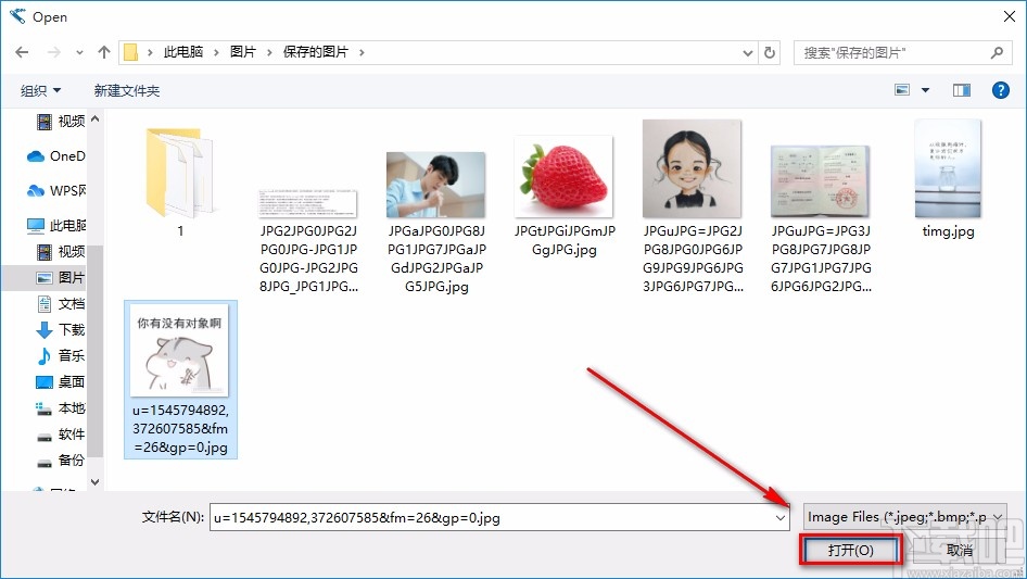 2.接着进入到文件添加页面,我们在页面中找到需要去除水印的图片并选中,再点击页面右下角的“打开”按钮即可。