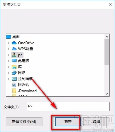 3.在文件保存路径选择页面中,我们选中文件的保存位置后,再点击页面右下角的“确定”按钮即可。