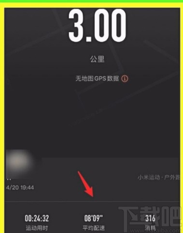 5.点开某一条记录后,我们会看到如下图所示的界面,在界面上可以看到本次运动的时间、平均配速以及消耗量。