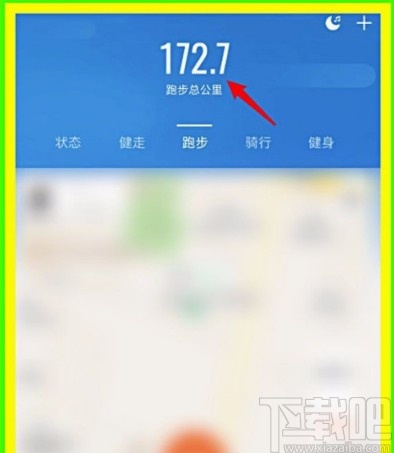 3.进入到跑步主页面后,我们在页面上方就可以查看到累计的跑步总公里数,如下图所示。