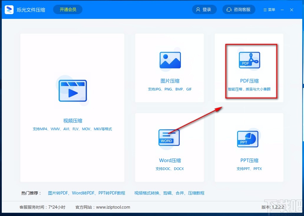 1.首先打开软件,我们在界面上找到“PDF压缩”选项,点击该选项就可以进入到PDF压缩页面。
