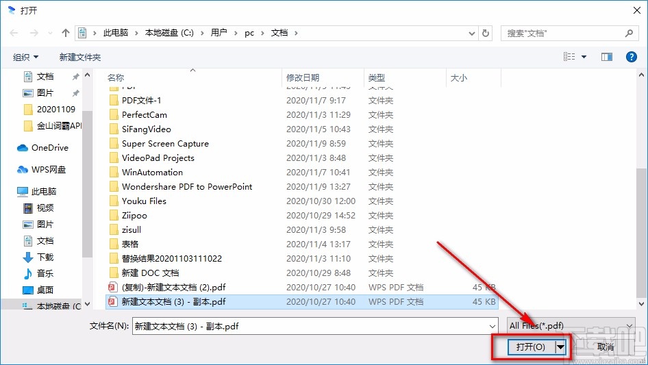 3.接着在文件添加页面中,我们找到需要压缩的PDF文件并点击,之后再点击页面右下角的“打开”按钮即可。