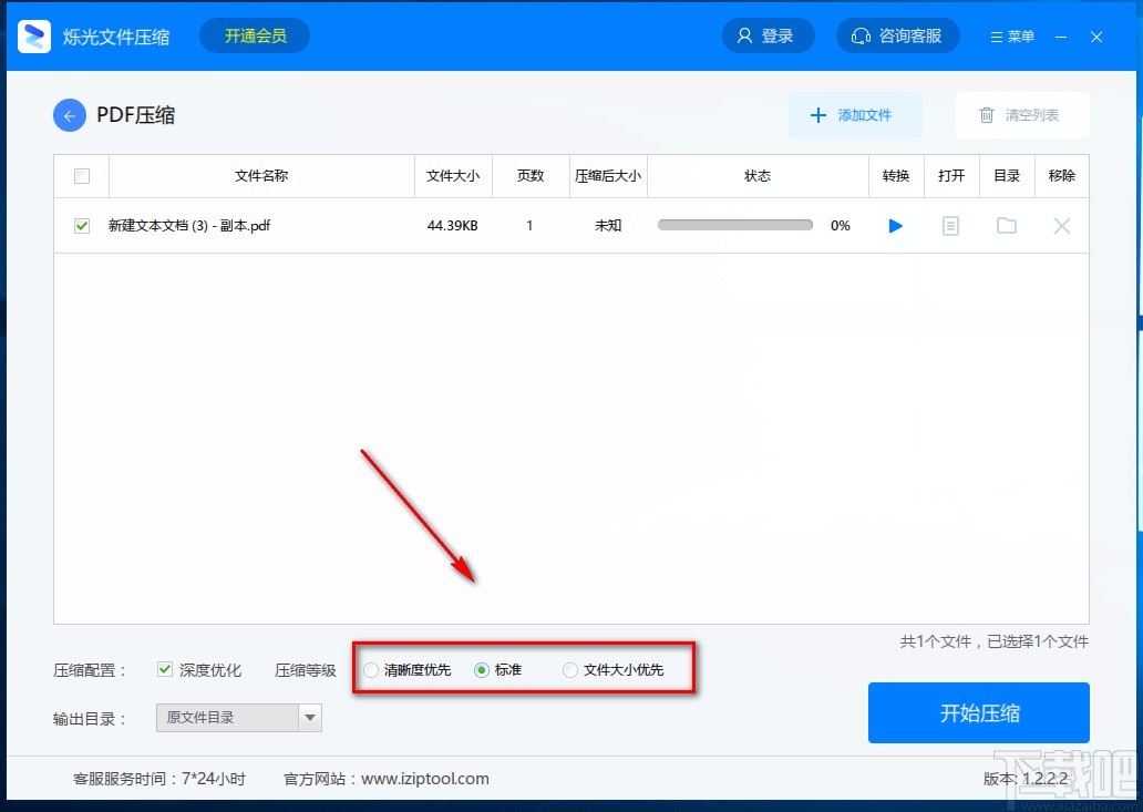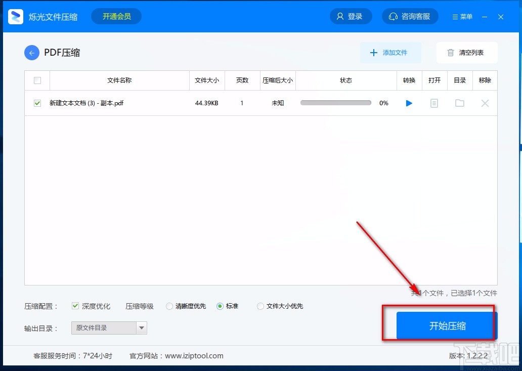 7.完成以上所有步骤后,我们在界面右下角找到蓝色的“开始压缩”按钮,点击该按钮就成功压缩PDF文件了。