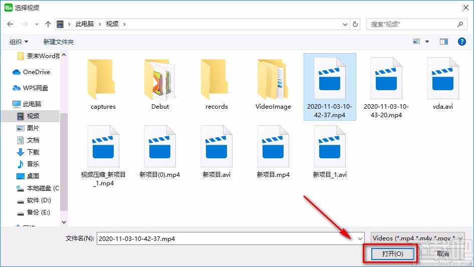 2.在文件添加页面中,我们选中需要压缩的视频文件,再点击页面右下角的“打开”按钮,即可将视频添加到软件中。