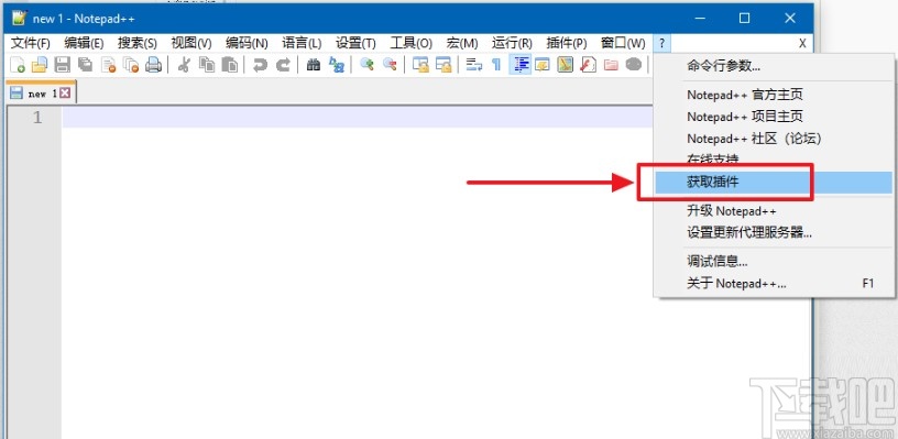 1.首先第一步我们打开软件之后,在软件界面上方找到“?”这个图标,然后点击这个图标之后在出现的菜单中点击获取插件。