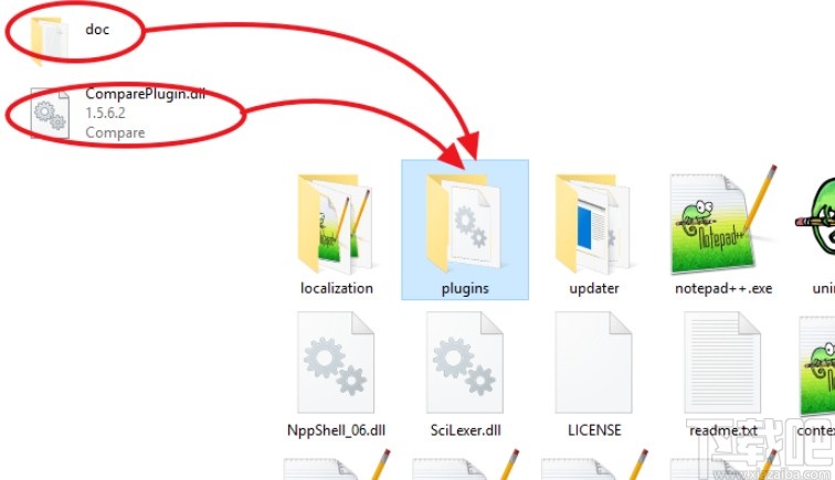 5.之后下一步我们打开notepad++软件安装的目录,打开之后将解压得到的插件文件移动到notepad++软件安装目录的“plugins”这个文件夹中。
